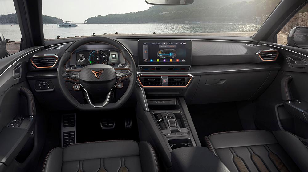 Inside the Formentors leather and matte interior is complemented with copper stitching and trim. The 12-inch central infotainment screen that comes as standard. VAT payable at 20.